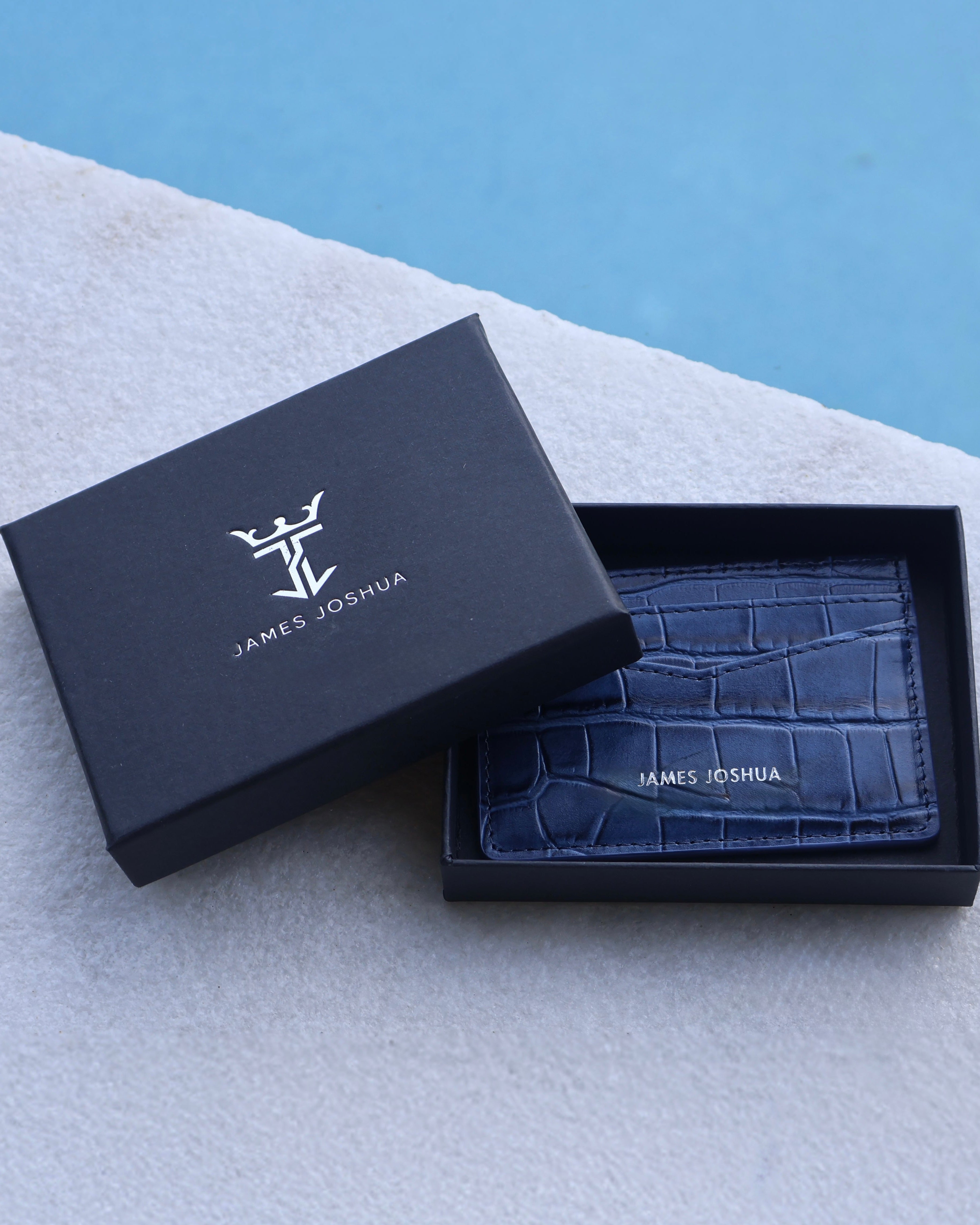 CROC LEATHER CARDHOLDER - ROYAL BLUE